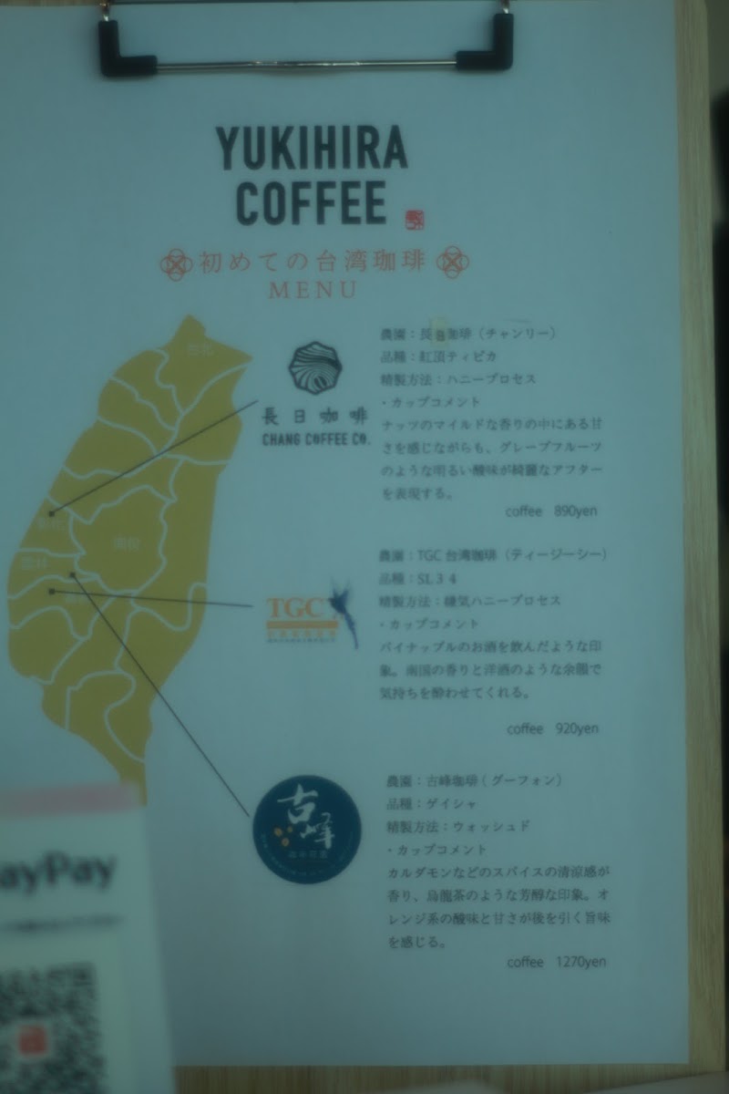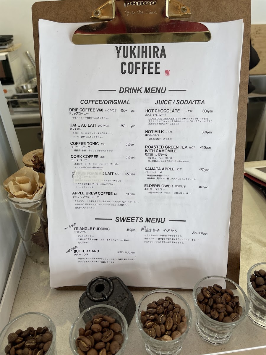 YUKIHIRA COFFEE Roastery Coffee Stand Menu